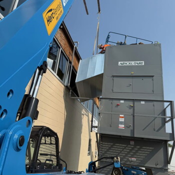 PCA expanded their facility that housed their glue process. Armock met with the owner and general contractor to design a ventilation system to help eliminate the haze created from their process. Two (2) 100% Outside Air VFD Make-up air units, 50,000 CFM, were installed to provide 6 air changes per hour. Sidewall exhaust fans were installed on the opposite side of the building to provide even airflow across the plant.